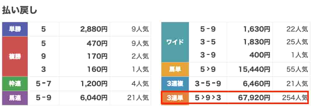馬券代10,400円獲得金額61,920円でプラス5万円ありがとうございます!