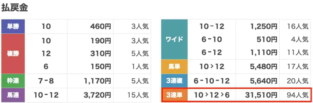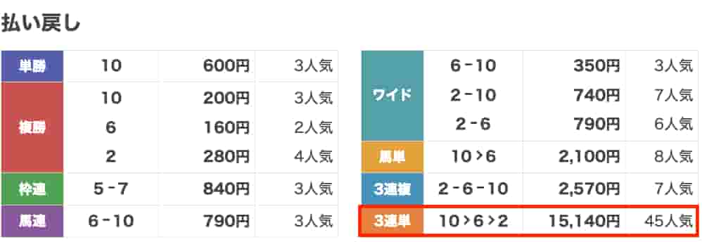 まさかの3連単10→6→2が的中!