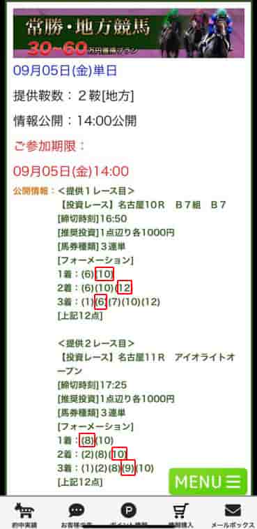 馬蹄(バテイ)の有料予想に参加!