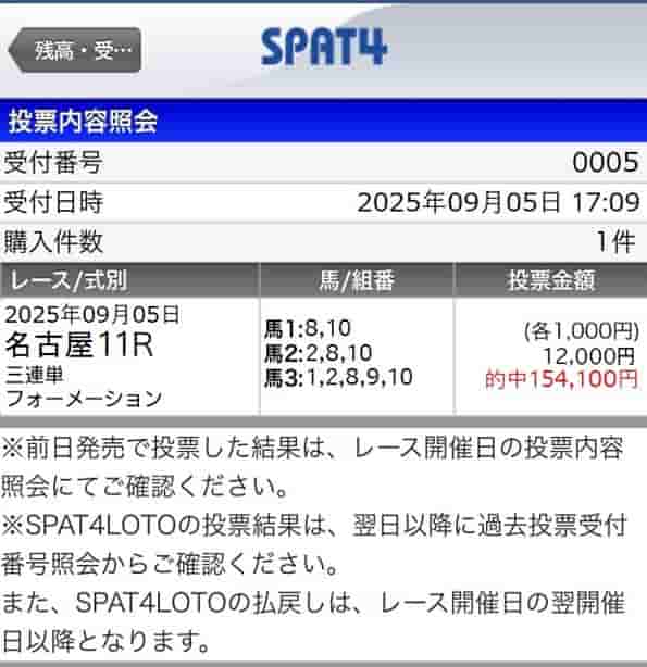 | 馬券代 | 12,000円 |