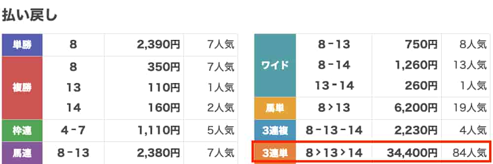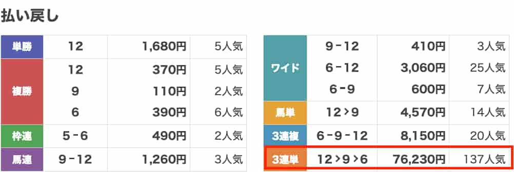 【中京10R】の3連単で6,000円の投資が287,800円に!
