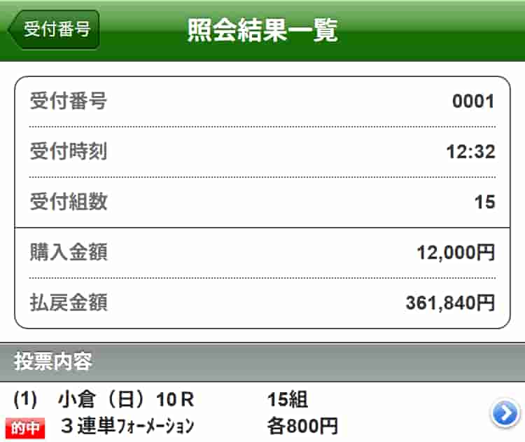 今回は中京1Rの3連単で見事的中!しかも金額もきっちり回収できるし、本当に助かっています。