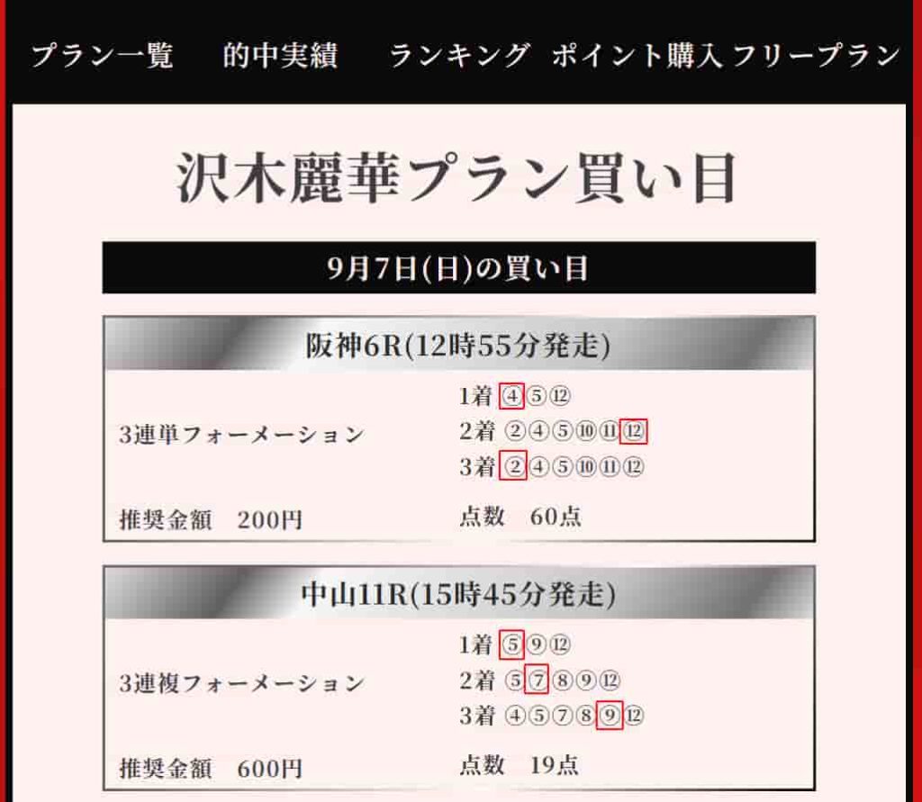 09月07日(日)阪神6R/中山11R [沢木プラン]