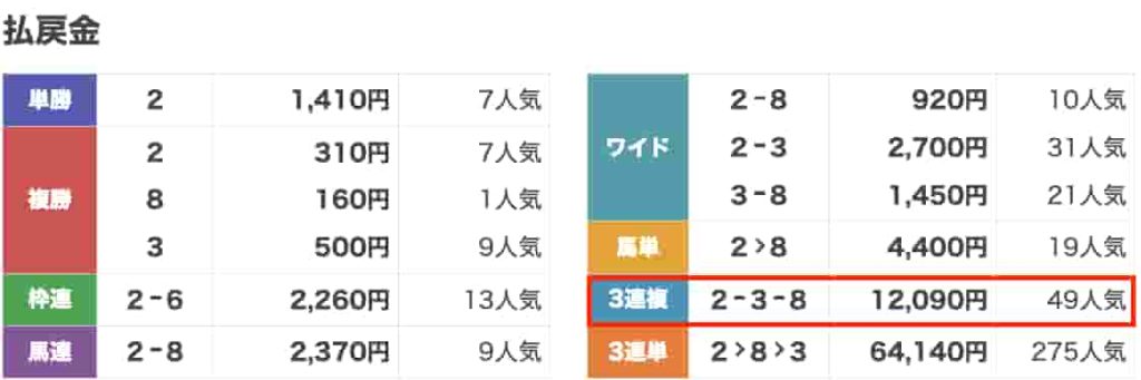 このダブルヒットで、合計259,120円の払い戻しになりました。