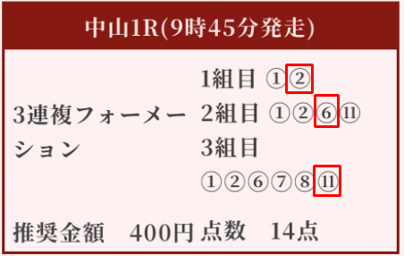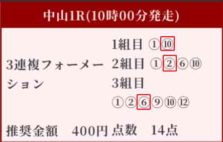 中山1Rと3Rの2レースが的中しました!