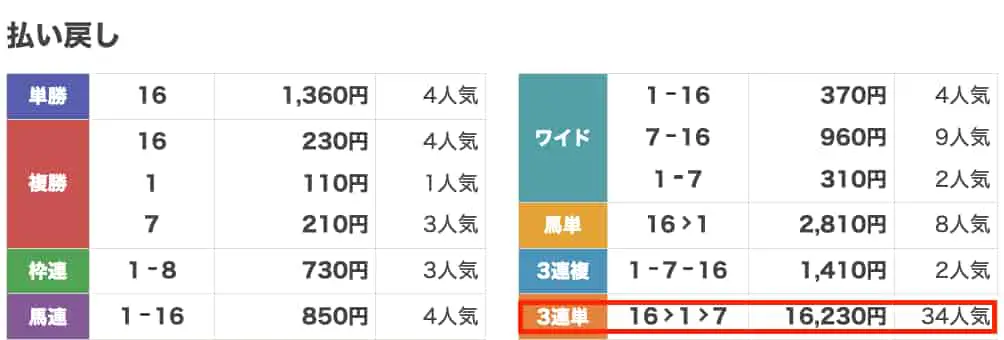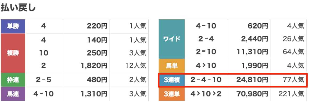 3連複16点を少額で流しただけなのに、24,200円も戻ってきました。