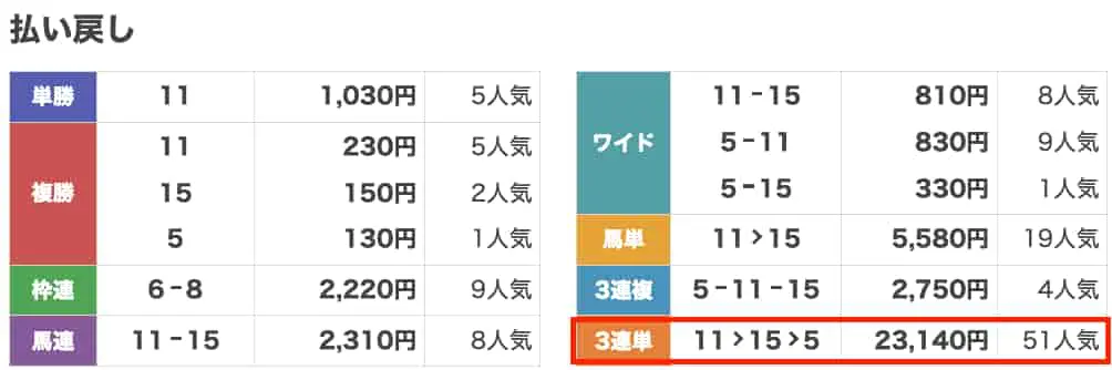 払い戻し5,020円