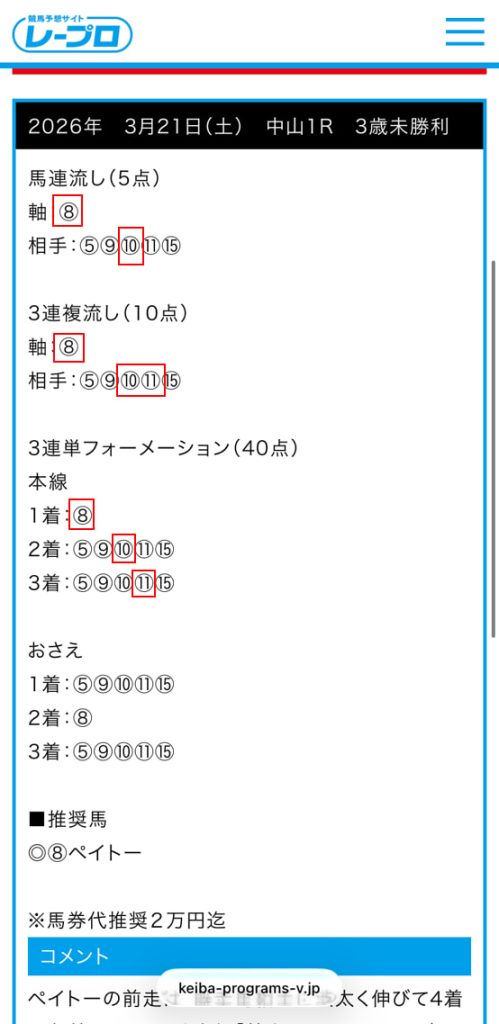 午前中に少しだけ競馬してみようと無料予想をチェック。