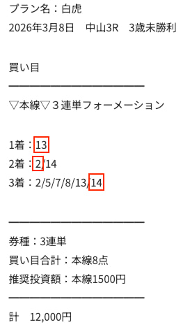 無駄な買い目を一切省いて、ここぞというところに厚く張らせる白虎プランの戦略勝ちですね。点数を絞れるからこそ、この利益が出るんだと実感しました。