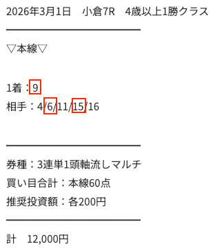 03月1日 小倉7R 4歳以上1勝クラス