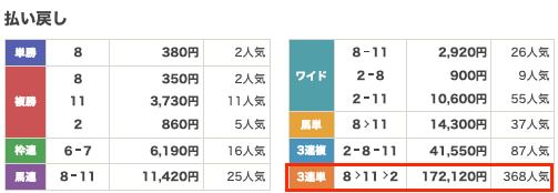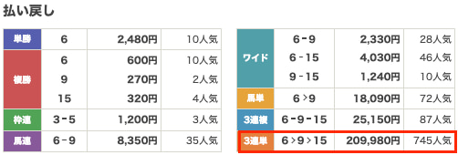 貯めた軍資金12,000円を握りしめて挑戦した中山3R、まさかの一撃21万5250円的中です……。